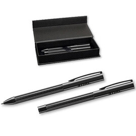 Onze schrijfset in een zwarte geschenkdoos bevat een balpen en een vulpotlood. Oranje contrastelementen en een soft-touch coating zorgen voor een goede grip. Zwarte balpen.